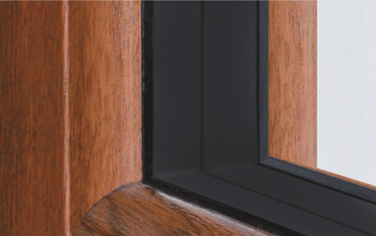 Quel que soit la couleur de la fenêtre en PVC, le noir mat de l’intercalaire DuraTherm intègre parfaitement le vitrage isolant dans l’esthétique du châssis.
